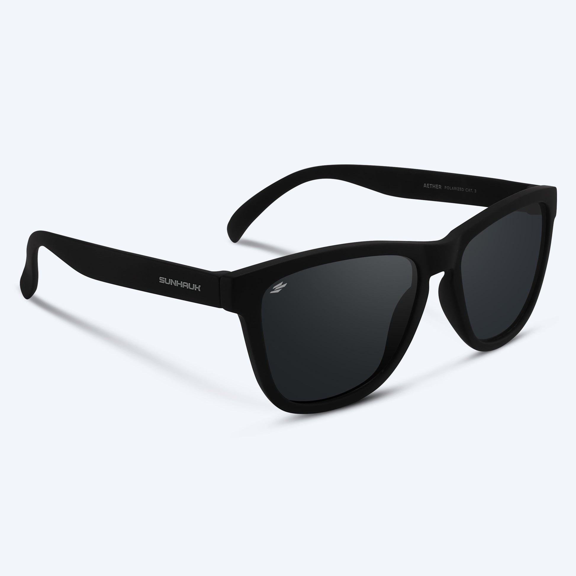 These rubberized matte black sunglasses combine timeless design with cutting-edge performance. Laser-cut polarized UV400 lenses deliver superior clarity, glare reduction, and complete sun protection. Lightweight and durable at just 26 grams, Aether ensures all-day comfort with flexible, BPA-free polycarbonate frames built to last.