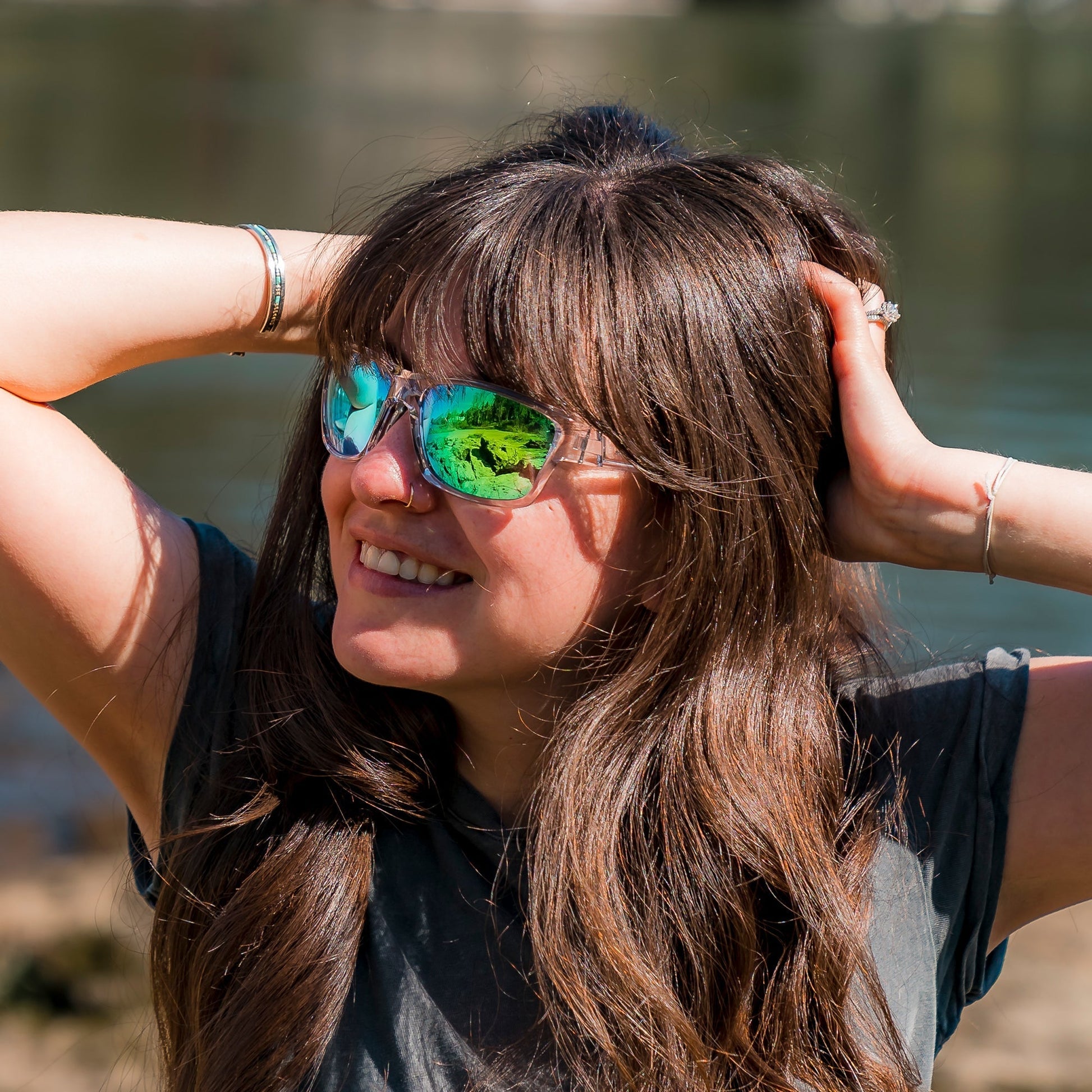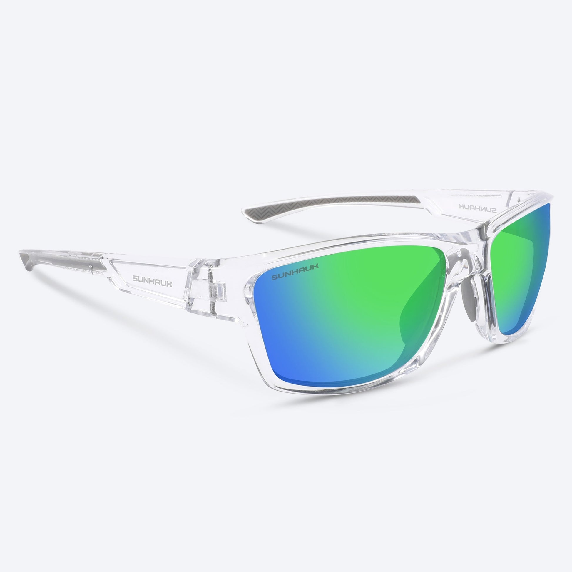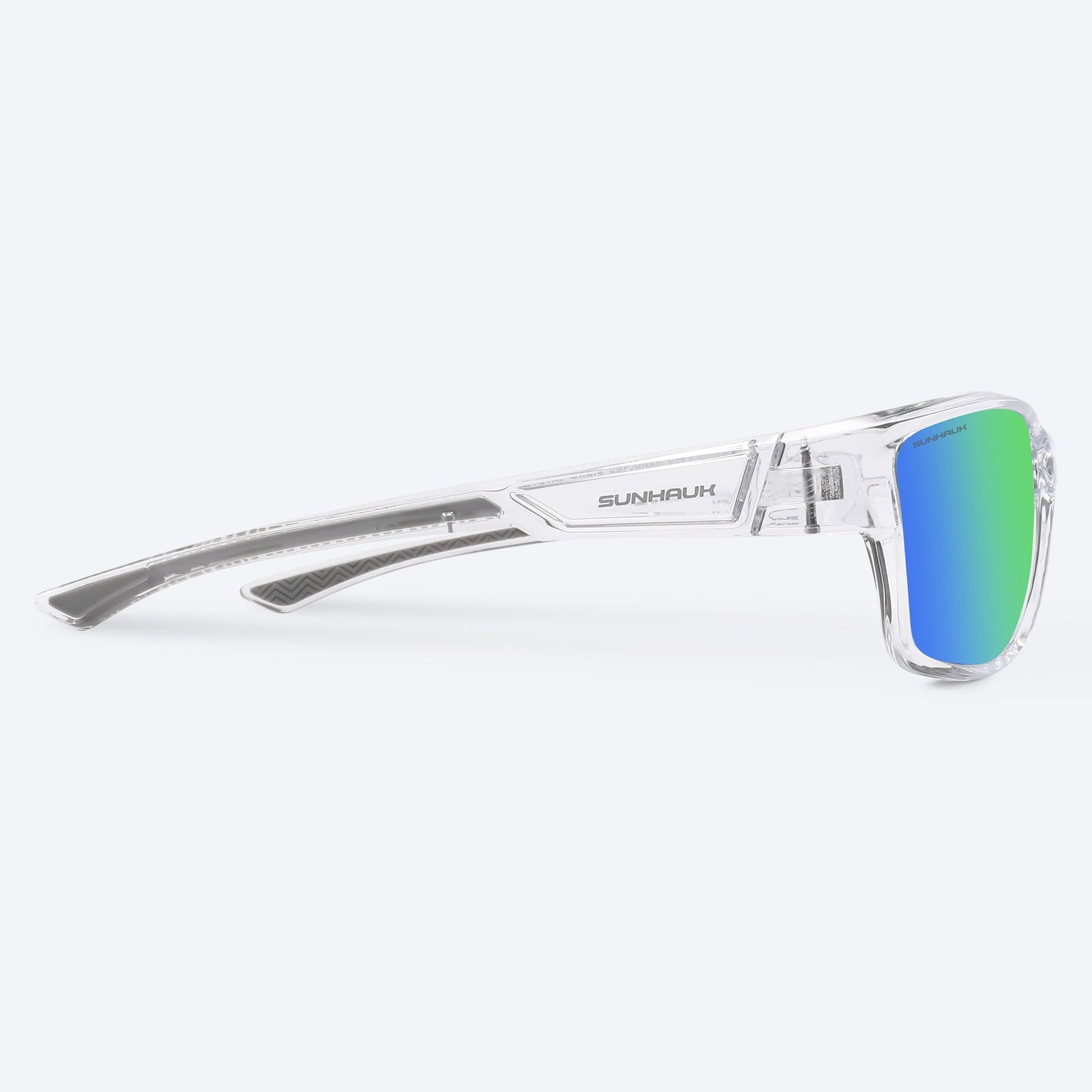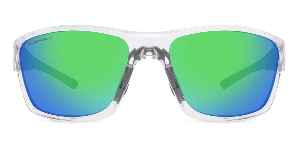 The crystal-clear TR90 frame and refreshing iridescent green lenses bring the beauty of nature to every adventure. Polarized UV400 lenses deliver glare-free clarity, while anti-scratch, anti-saltwater, and oleophobic coatings ensure pristine vision. With rubberized non-slip temples and nose pads, plus clear gloass frames, Crystal Oasis is the perfect companion for all your outdoor pursuits.